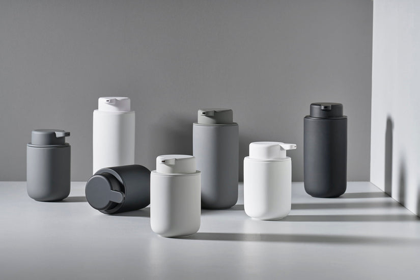 So great may be practical! The bathroom series Lano combined plain white with the fashion trend color Charcoal Grey. Are all bathroom accessories made from food-safe and scratch resistant material, melamine, which is also very easy to clean and durable....