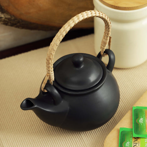 This sleek black ceramic tea pot combines modern elegance with rustic charm, featuring a sturdy rope handle for a comfortable grip. Its deep black finish exudes sophistication, while its 3-4 cup capacity makes it perfect for sharing tea with friends or family. The unique rope handle adds a touch of earthy texture, enhancing its stylish and functional design